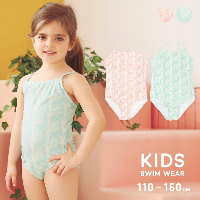水着 女の子 ワンピース キッズ水着 女の子 リーフ柄 グリーン ピンク オールインワン ワンピース水着 子ども水着 110 1 130 140 150 Cm Rt1901 オシャrevo 通販 Yahoo ショッピング